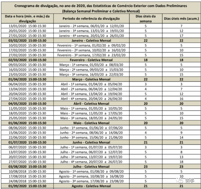 7月份第一周的3個工作日,出口量為561萬噸,日均187萬噸;第二周的5個工作日,出口量為892萬噸,日均178.4萬噸。根據(jù)巴西經(jīng)濟部公布的數(shù)據(jù),7月份巴西共有23個工作日,預估7月份巴西鐵礦石出口量大概率將超過3000萬噸,在6月份基礎上有較大增幅。6月份,巴西鐵礦石出口量為3004.8萬噸,同比增加1.3%,環(huán)比增加39%,為8個月來首次突破3000萬噸。