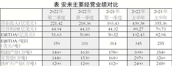 第二季度,安米EDITDA(稅息折舊及攤銷前利潤)為51.63億美元,上半年EBITDA同比增長23.5%。