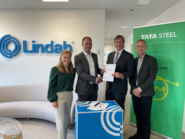 圖為塔塔鋼鐵與林達公司簽署低碳排放鋼供應協(xié)議現(xiàn)場。 (圖片來源于塔塔鋼鐵官網(wǎng))