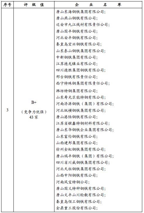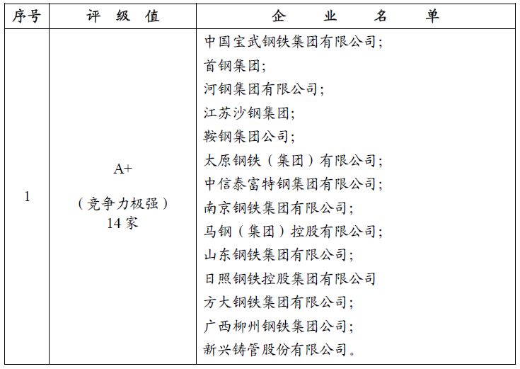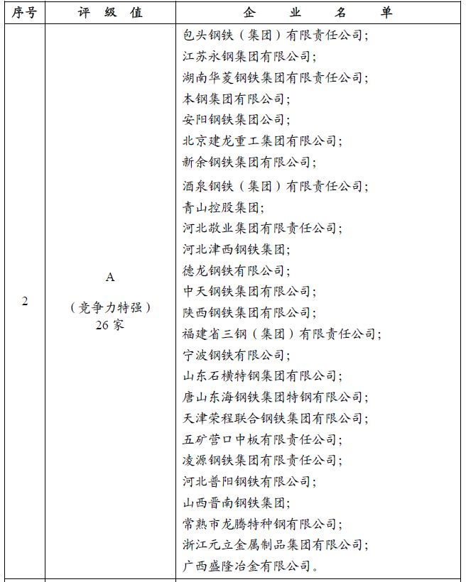 綜合比較108家鋼鐵企業的23項指標,結合專家研判,2018年中國鋼鐵企業綜合競爭力評級見表1(評級值相同的企業,不分排名先后)。