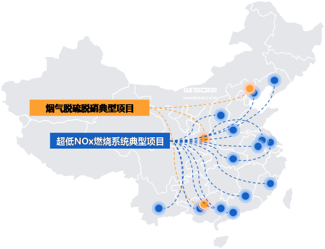 圖:中冶南方熱工公司典型低NOx項目分布(不列示同一城市項目數(shù)量)