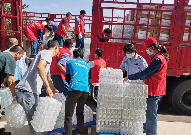 圖為發放防暑降溫物資(陜鋼供圖)