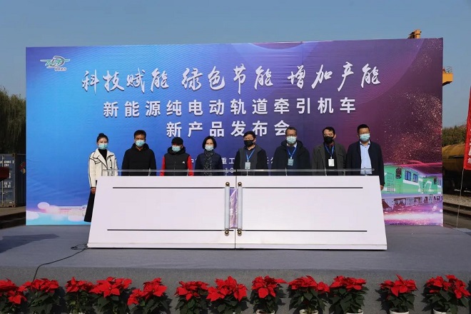 在隨后進行的新品發布會啟動儀式上,與會嘉賓共同見證了新能源純電動軌道牽引機車緩緩駛向會場,現場觀摩了車輛的空載和實載運行情況。