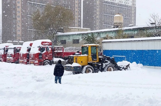 本鋼板材儲運中心組織人力對區域內積雪進行全面清掃,確保區域各庫區道路暢通,方便生產物資運輸。