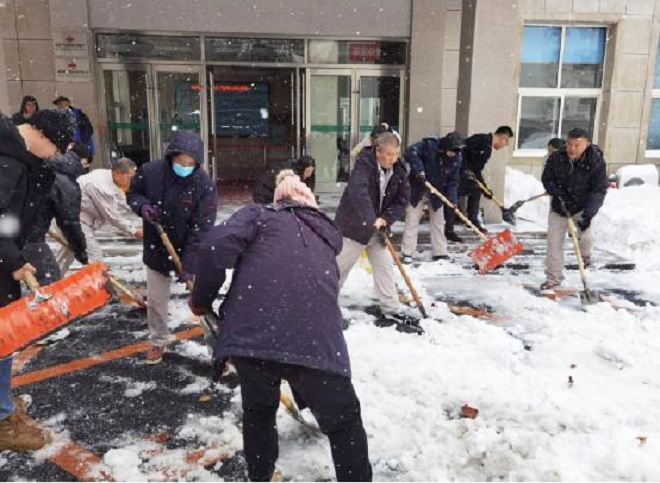 鞍鋼集團工程技術有限公司保安人員、后勤保障人員、青年團員、機關部門及各事業部員工自發清理積雪。