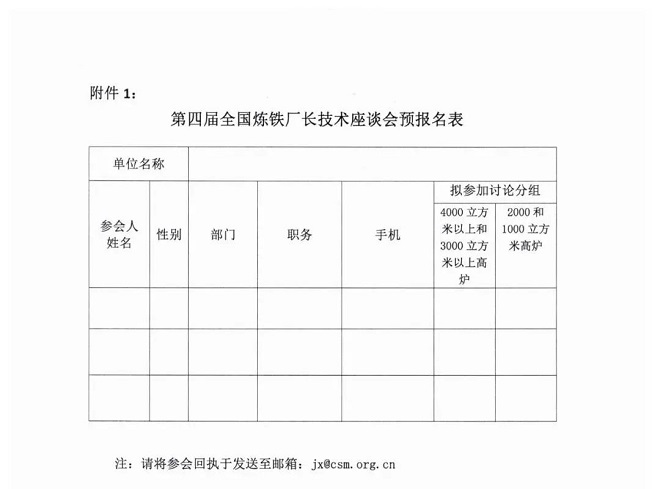 各煉鐵廠廠長、技術(shù)負(fù)責(zé)人2-3人參會。