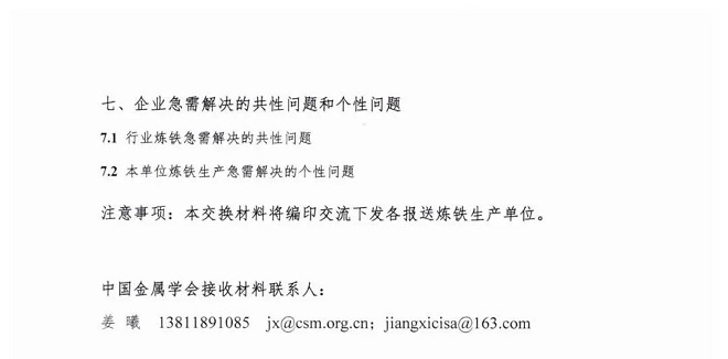 2. 2021年各企業(yè)煉鐵生產(chǎn)技術(shù)總結(jié)交換材料word版本。各單位需提供本企業(yè)交換材料,會議期間交流下發(fā)各生產(chǎn)單位。接收材料聯(lián)系人:
