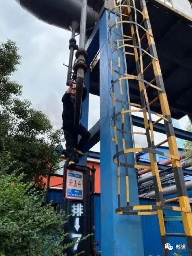 另外,在檢查過程中,明查暗訪組發(fā)現(xiàn)其中一高處排水器排水管閥門未設(shè)置操作平臺,開關(guān)操作耗時長、難度大?,F(xiàn)場工作人員對操作過程進(jìn)行了演示,只見其雙手扶梯攀援而上,繞過第一個排水閥,半蹲半站才能開關(guān)另一個排水閥。