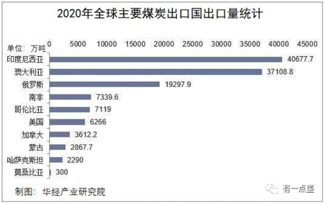 2021年印尼煤炭產量預計為6.09億噸,高于去年的5.5億噸產量目標;出口4.35億噸(2020年產量為5.64億噸,出口4.05億噸),為世界第一大煤炭出口國。根據Bancosta統計,全球2020年煤炭(焦煤和動力煤)海運量為11.3億噸。