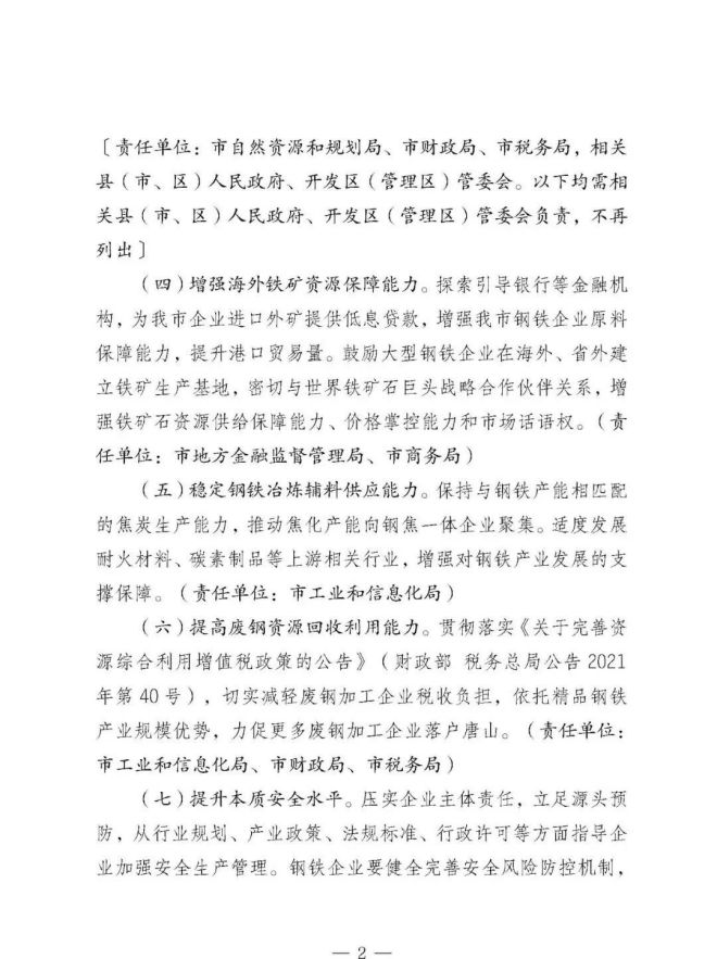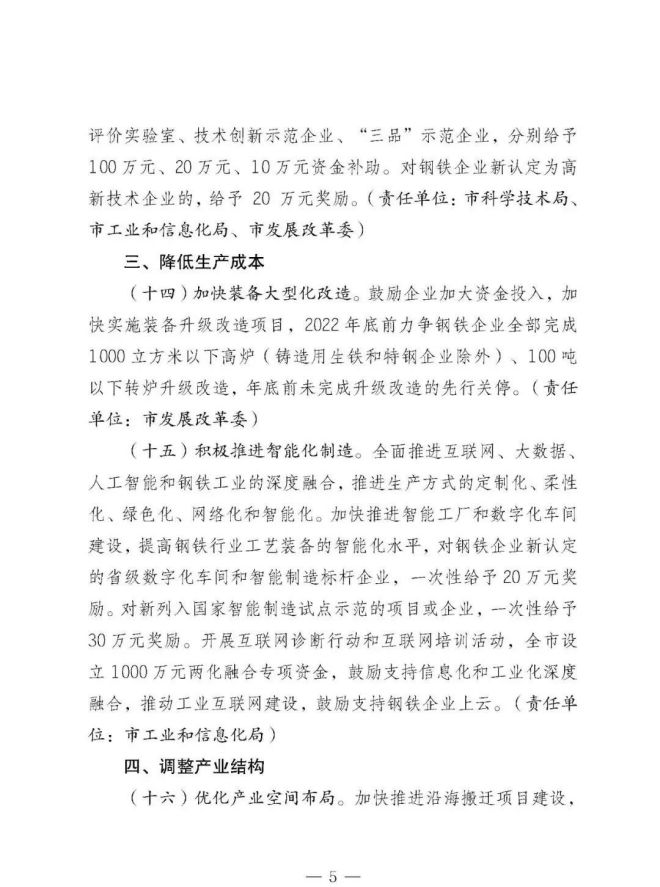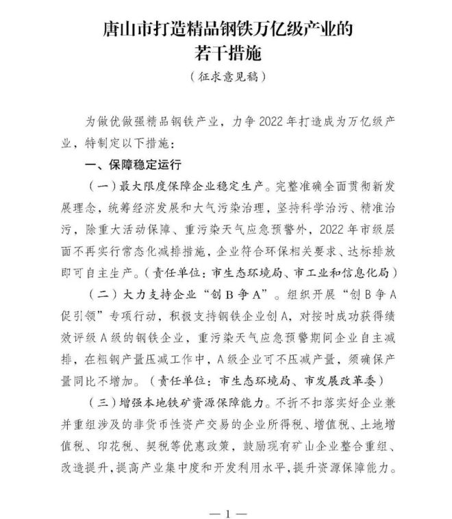 唐山市打造精品鋼鐵萬億級產業的若干措施