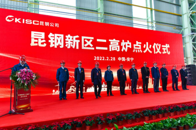 投產(chǎn)儀式上,寶武集團總經(jīng)理胡望明,云南省國資委副主任謝曙光,云南省滇中新區(qū)黨工委副書記趙學鋒,昆明市副市長王迅,昆鋼公司黨委書記、董事長王素琳等出席點火投產(chǎn)儀式。中冶南方黨委副書記、總經(jīng)理劉一鳴受邀出席,并發(fā)表致辭。