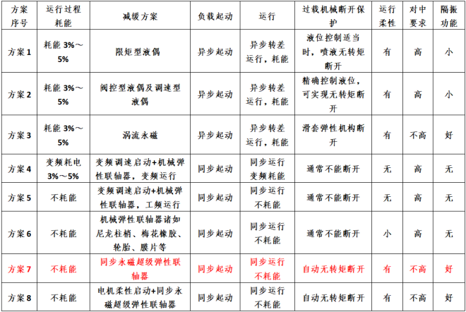 表1 常用柔性聯(lián)軸器方案負(fù)載起動(dòng)、運(yùn)行耗能、過(guò)載機(jī)械斷開(kāi)保護(hù)、運(yùn)行柔性、對(duì)中要求、隔振功能對(duì)比