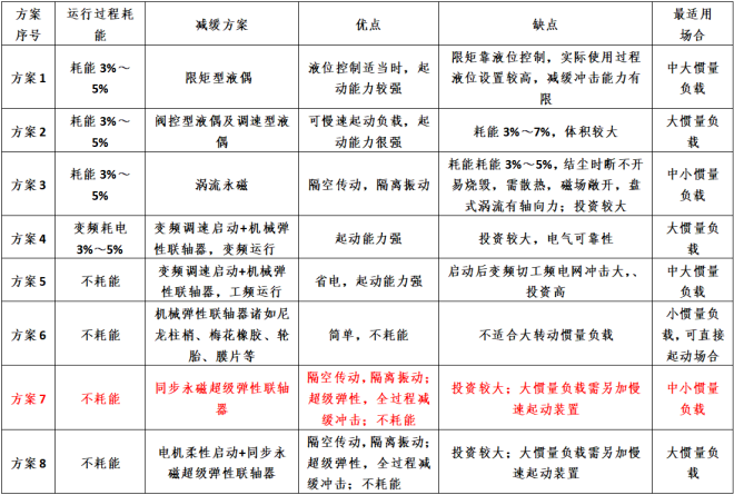 從上表可以看出,異步起動(dòng)轉(zhuǎn)差運(yùn)行類的柔性聯(lián)軸器存在3%~7%耗能,在選型過(guò)程應(yīng)盡量避免。柔性聯(lián)軸器盡量選用上表后四種減緩沖擊方案!同步運(yùn)行類聯(lián)軸器運(yùn)行過(guò)程不耗能,是首選的減緩沖擊方案。傳統(tǒng)的機(jī)械類同步聯(lián)軸器,由于其彈性減緩沖擊能力有限,單獨(dú)使用通常僅適用小慣量負(fù)載;同步永磁超級(jí)彈性聯(lián)軸器由于其超級(jí)彈性變形(7.5~15度,最大90度),減緩沖擊能力顯著增強(qiáng),使同步聯(lián)軸器成功應(yīng)用到中等慣量負(fù)載,為節(jié)能傳動(dòng)提供了一全新產(chǎn)品,也是唯一入選國(guó)家發(fā)改委《低碳目錄》的聯(lián)軸器。