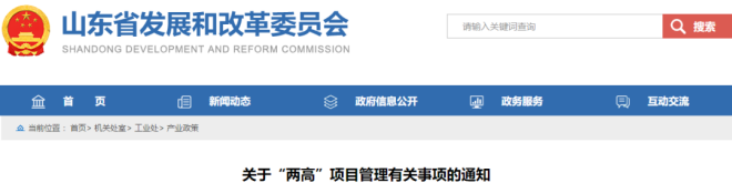 3月31日,山東省發展和改革委員會網站發布了《關于“兩高”項目管理有關事項的通知》(以下簡稱“《通知》”)。