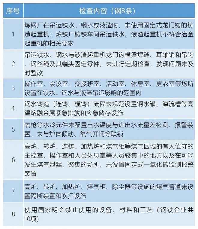 為認真貫徹國務院安委會關于安全生產“十五條硬措施”和陜西省開展安全生產大檢查工作部署,督促鋼鐵、粉塵涉爆、鋁加工(深井鑄造)企業嚴格落實安全生產主體責任,全面整治安全隱患問題,有效遏制較大以上生產安全事故,確保工貿重點企業安全生產專項整治三年行動取得預期效果,陜西省應急管理廳決定:4月20日至6月20日,在全省開展鋼鐵、粉塵涉爆、鋁加工(深井鑄造)企業21項安全問題“清零”執法行動。