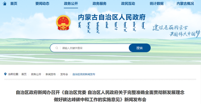 6月30日,內(nèi)蒙古自治區(qū)人民政府網(wǎng)站發(fā)布了自治區(qū)政府新聞辦召開(kāi)《自治區(qū)黨委 自治區(qū)人民政府關(guān)于完整準(zhǔn)確全面貫徹新發(fā)展理念做好碳達(dá)峰碳中和工作的實(shí)施意見(jiàn)》新聞發(fā)布會(huì)一文。