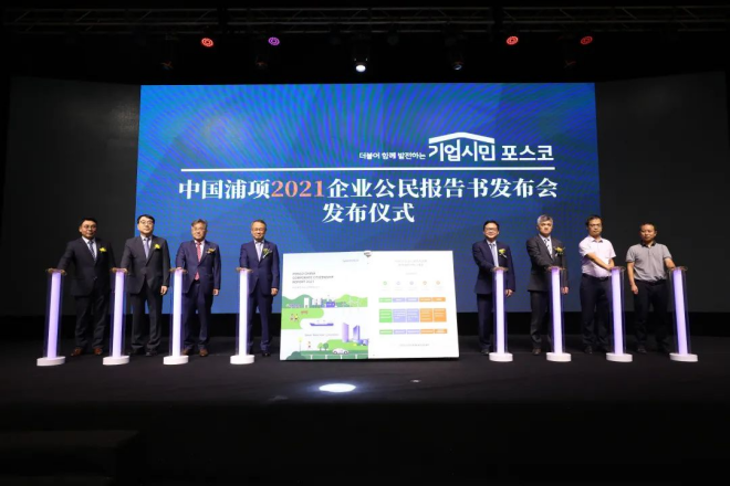 2022年8月25日下午,北京浦項中心召開《中國浦項企業公民報告2021》暨《中國浦項企業公民·ESG優秀實踐案例集》發布會,這是POSCO進入中國以來,在華法人聯合發布的第11份企業公民報告、第1份ESG優秀實踐案例集,報告書連續第6年榮獲中國企業社會責任報告評級專家委員會五星級評價。