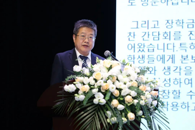 北大教育基金會副秘書長王勇在致辭中表示:“自2005年POSCO集團在北京大學設立獎學金以來累計獎勵了超過兩百人次的北大優秀學子,對青年學子全面成長、北京大學人才培養事業發展、中韓青年交流和友誼傳遞做出了貢獻。”