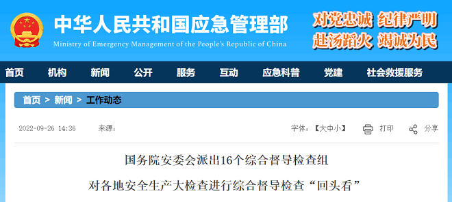 從應急管理部獲悉,國務院安委會近日派出16個由國務院安委會成員單位負責同志分別帶隊的綜合督導檢查組,對31個省(區、市)和新疆生產建設兵團安全生產大檢查進行綜合督導檢查“回頭看”。