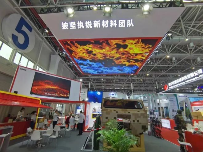 以高防護模塊化輕型戰術車輛車身為載體,展示了團隊研制的各種配套新材料,包括兼具優異工藝性能的高強度的裝甲鋼板制備的車頂與側圍件、高強超韌防爆鋼板制備的底部防雷組件、超高強鋼制備的超高強緊固件,稀土耐蝕普碳鋼制備地板,同時展示了長壽命身管鋼、超高強度侵徹彈鋼等火力系統用高性能材料。其中硬度500~550HB級高強防彈鋼板,采用低碳當量合金設計和先進工藝生產流程,純凈度高,具有良好冷成形和焊接性能。900~1300MPa級高強韌防爆鋼板,具有優異的強韌性匹配與抗爆性能,采用大規模工業生產、產品質量穩定、成本可控。12.9~19.8級高強緊固件及材料,從國內現役最高到團隊開發的世界最高強度等級緊固件,可滿足輕量化需求。同時研制了更高強韌性火炮身管材料和不同強韌性級別的侵徹彈材料,并大幅降低成本,提升了軍工材料的保供能力。