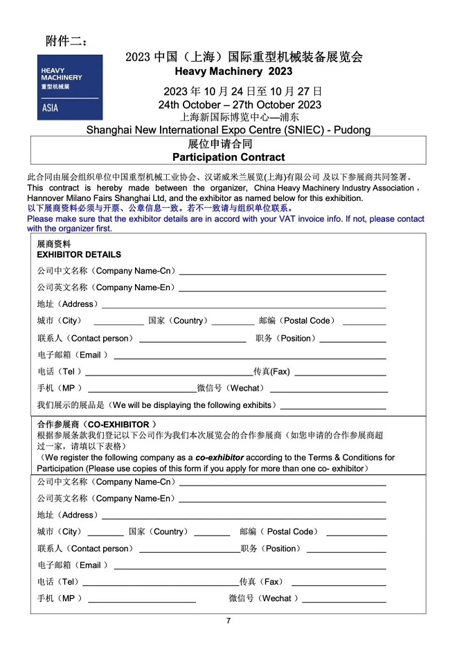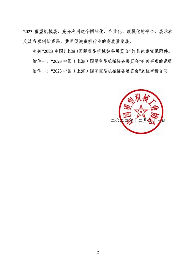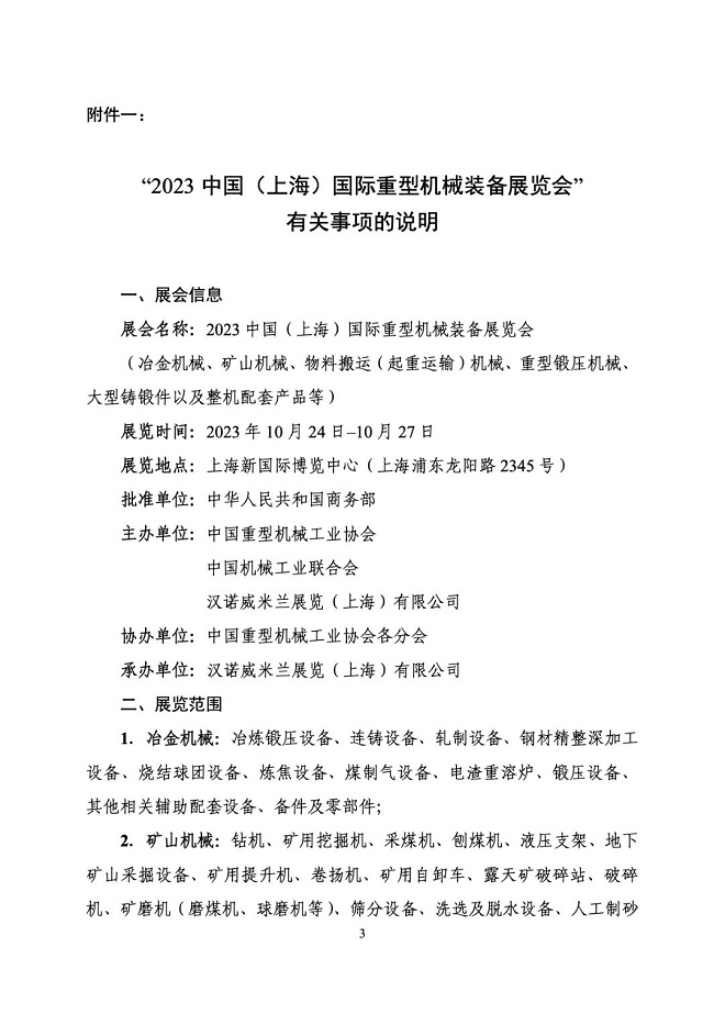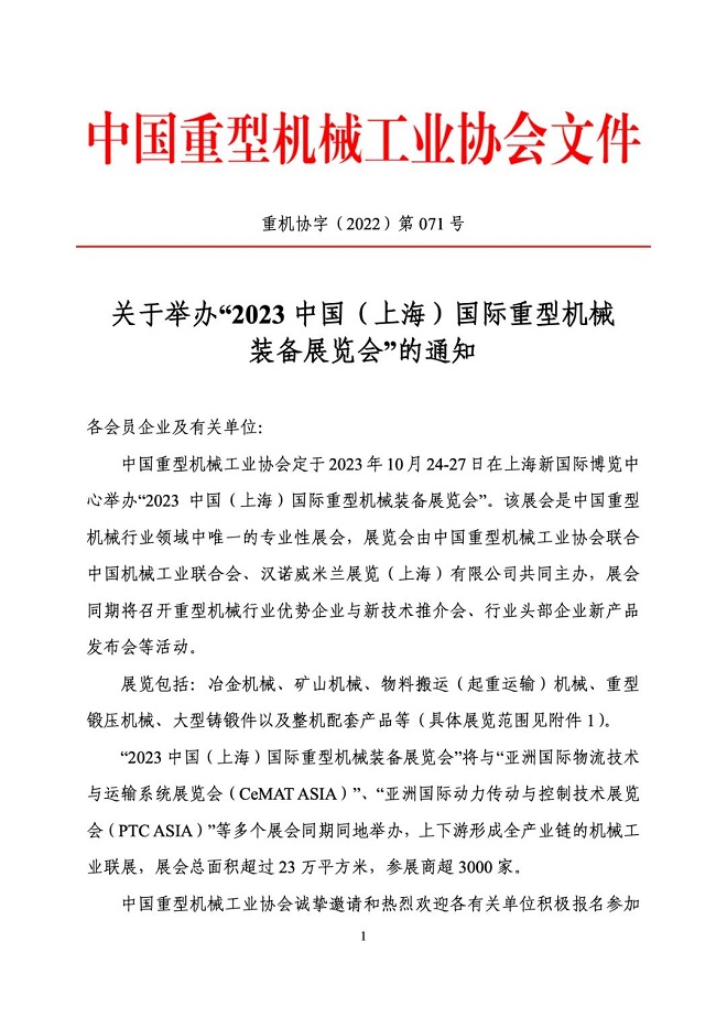 關(guān)于舉辦“2023中國(guó)(上海)國(guó)際重型機(jī)械裝備展覽會(huì)”的通知