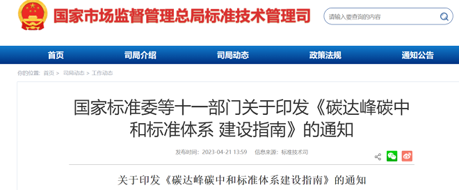 近日,為貫徹落實黨中央、國務院關于碳達峰碳中和重大戰略決策,深入實施《國家標準化發展綱要》,根據《建立健全碳達峰碳中和標準計量體系實施方案》相關要求,加快構建結構合理、層次分明、適應經濟社會高質量發展的碳達峰碳中和標準體系,國家標準委等部門發布了《碳達峰碳中和標準體系建設指南》(以下簡稱《指南》)。