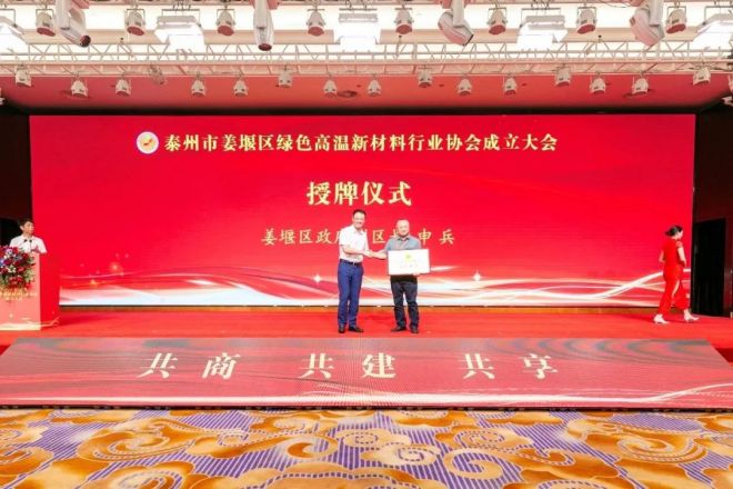 8月16日,江蘇省泰州市姜堰區(qū)綠色高溫新材料行業(yè)協(xié)會(huì)成立大會(huì)召開(kāi)。