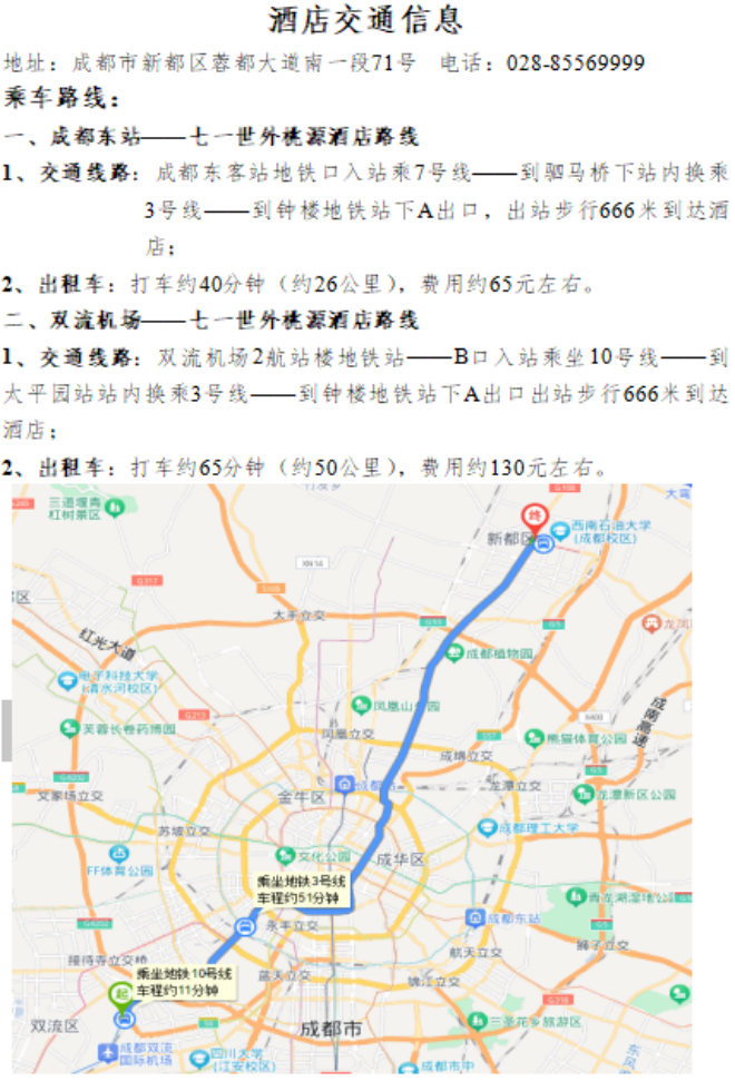 2、報到酒店:成都七一世外桃源酒店( 028-85569999)