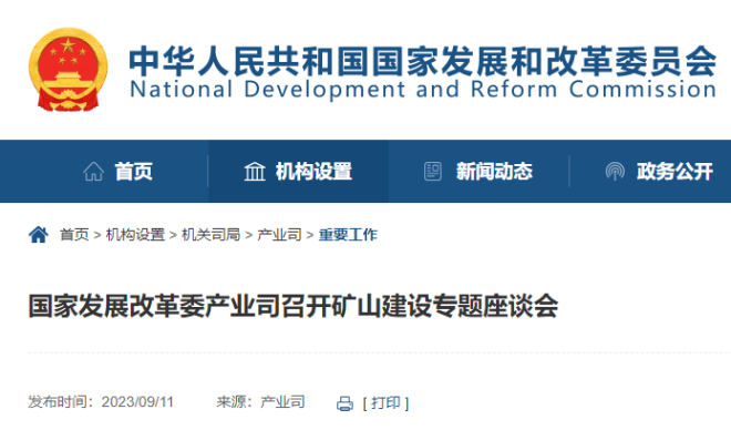 從國家發(fā)展改革委產(chǎn)業(yè)司網(wǎng)站獲悉,為加快推進國內(nèi)礦山項目開發(fā)建設(shè),提升礦產(chǎn)資源供應(yīng)保障能力,近日,國家發(fā)展改革委產(chǎn)業(yè)司召開礦山項目開發(fā)建設(shè)座談會,深入了解國內(nèi)鐵礦、有色金屬礦等重點礦山項目基本情況、開發(fā)建設(shè)進展和面臨的難點堵點,認真聽取有關(guān)政策措施意見建議,并就下一步工作進行了深入研討。