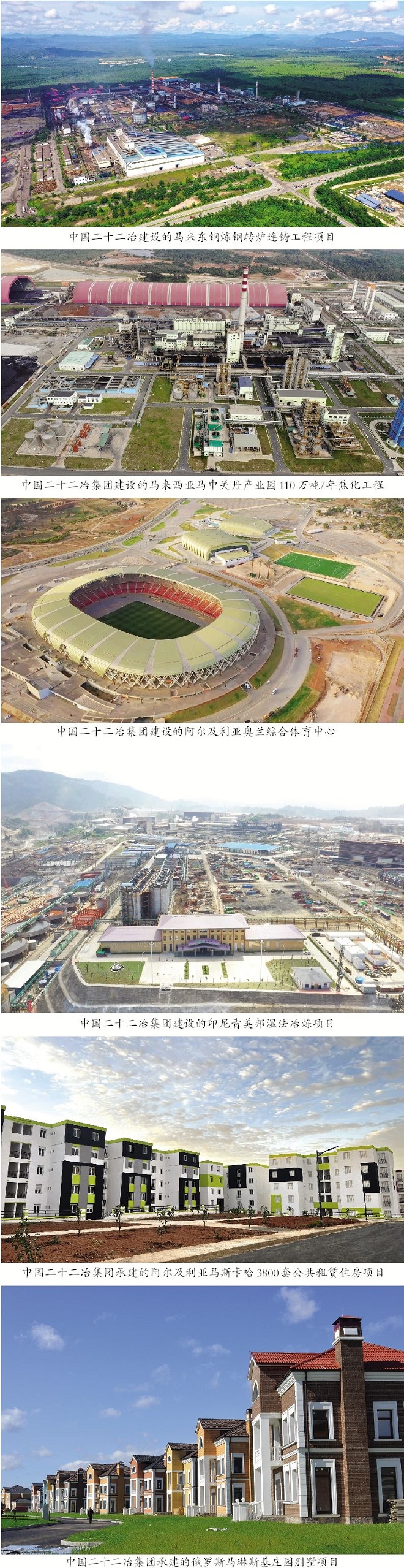 作為“一帶一路”建設的先行者和主力軍,中國二十二冶集團始終秉承“共商、共建、共享”理念,謀篇布局書寫國際美譽大文章,在傳承與奮進中擦亮“世界一流冶金建設國家隊”的金字招牌。其在馬來西亞建設的馬來西亞馬中關丹產業園110萬噸/年焦化工程榮膺境外魯班獎,在印尼東蘇拉威西島建設的德信鋼鐵轉爐連鑄工程榮獲冶金行業工程質量優秀成果獎。中國二十二冶集團以“世界一流企業的使命擔當”將“冶金報國”偉大征程拓展到世界版圖,打造了一個個“國家地標”“合作豐碑”:俄羅斯KIMKAN鐵礦選礦廠項目、巴新鎳鈷冶煉廠項目、緬甸大巴紙漿廠項目、西澳SINO鐵礦項目、蒙古烏蘭鉛鋅礦項目、伊朗Ardakan80萬噸/年電爐煉鋼項目、約旦AMCP6000噸/天水泥熟料生產線項目等,向世界持續展現中國建造水平和中國工匠技藝,在世界鋼鐵的頂級賽場奪得一項項傲人成績,為推動構建新發展格局和人類命運共同體做出巨大貢獻。