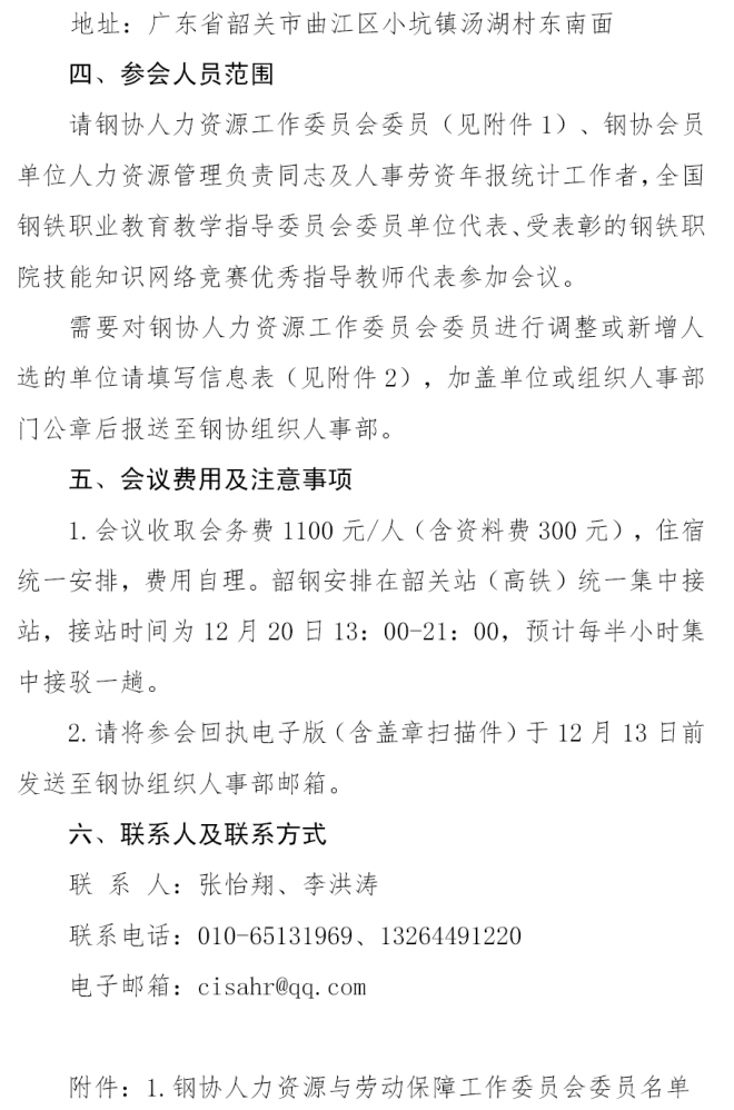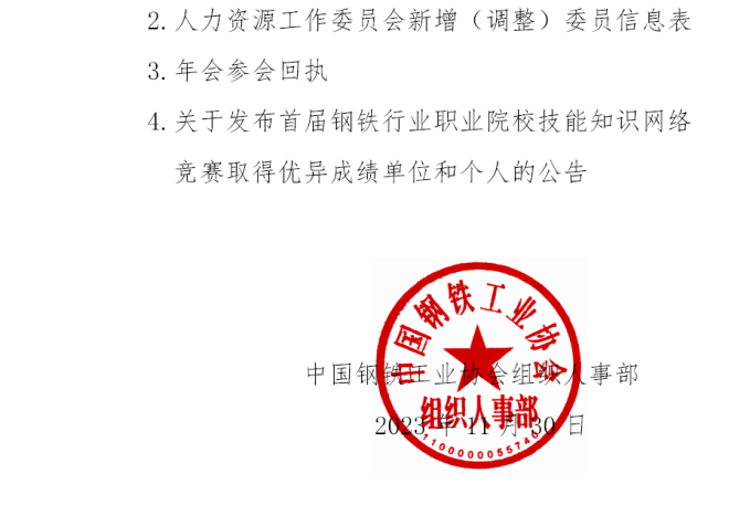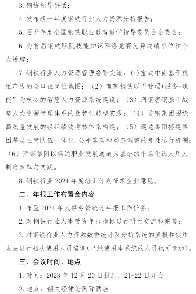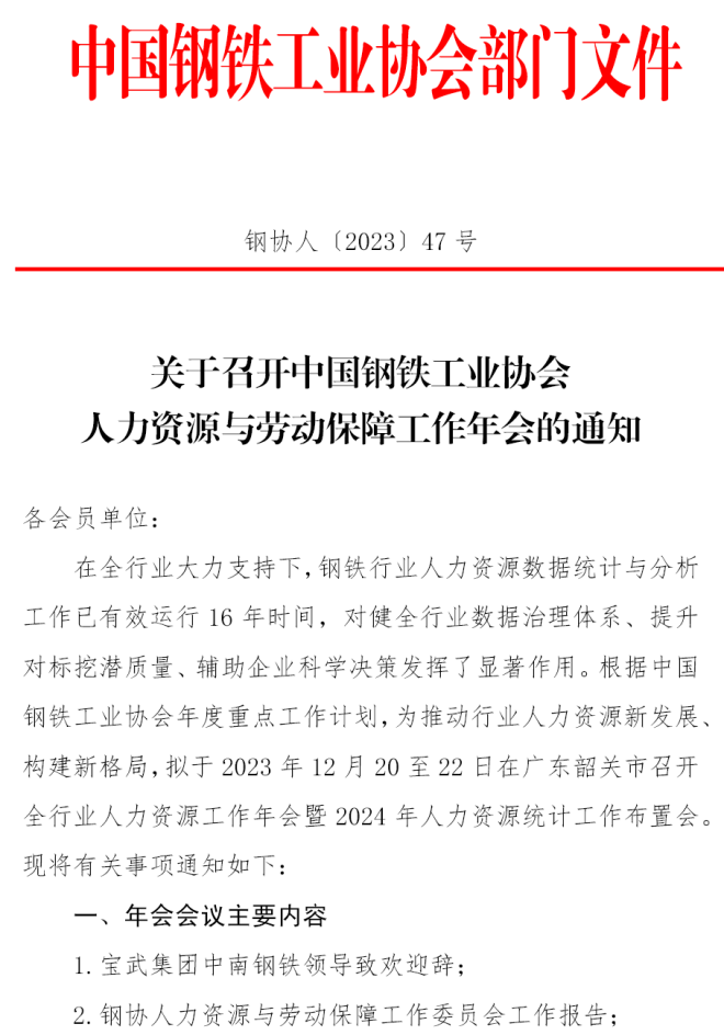 關(guān)于召開中國鋼鐵工業(yè)協(xié)會人力資源與勞動保障工作年會的通知