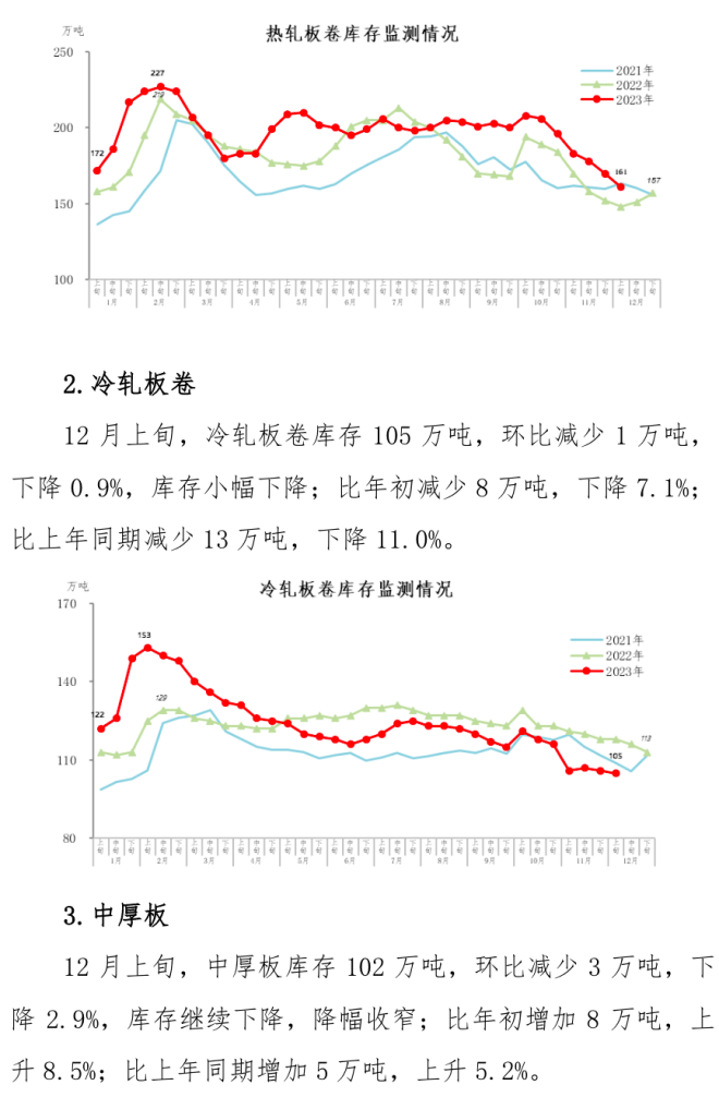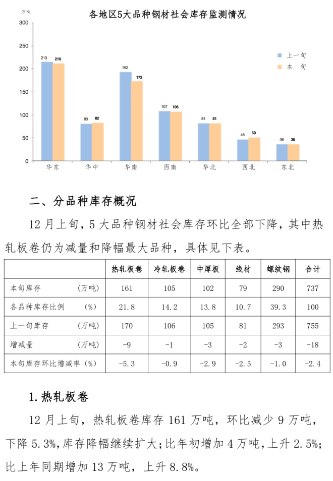2023年12月上旬鋼材社會庫存737萬噸,環比下降2.4%