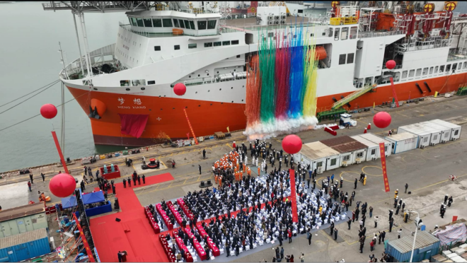 12月18日,我國自主設計建造的首艘大洋鉆探船——“夢想”號命名暨首次試航活動在廣州南沙舉行,標志著我國深海探測能力建設和海洋技術裝備研發邁出重要步伐。自然資源部黨組成員、中國地質調查局局長李金發出席活動并致辭。中國地質調查局黨組成員、副局長顏成義宣讀命名文件。廣東省人民政府副省長張少康,中國船舶集團黨組成員、副總經理盛紀綱出席活動并致辭。中國地質調查局廣州海洋局匯報大洋鉆探船建設進展。
