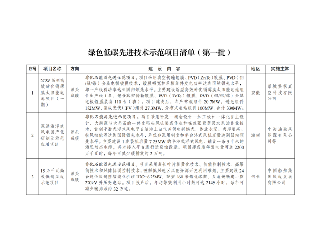 4月16日,中華人民共和國國家發展和改革委員會網站發布了關于印發《綠色低碳先進技術示范項目清單(第一批)》的通知(以下簡稱《通知》)。