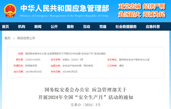 開展2024年全國“安全生產月”活動的通知