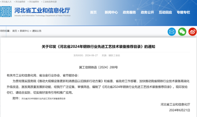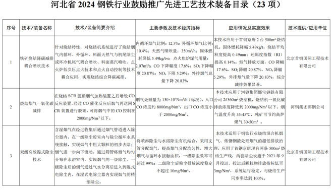 河北省工業和信息化廳印發《河北省2024年鋼鐵行業先進工藝技術裝備推薦目錄》