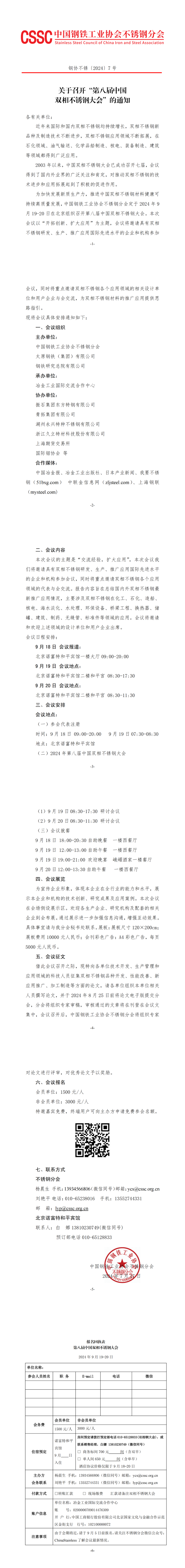 關于召開“第八屆中國雙相不銹鋼大會”的通知
