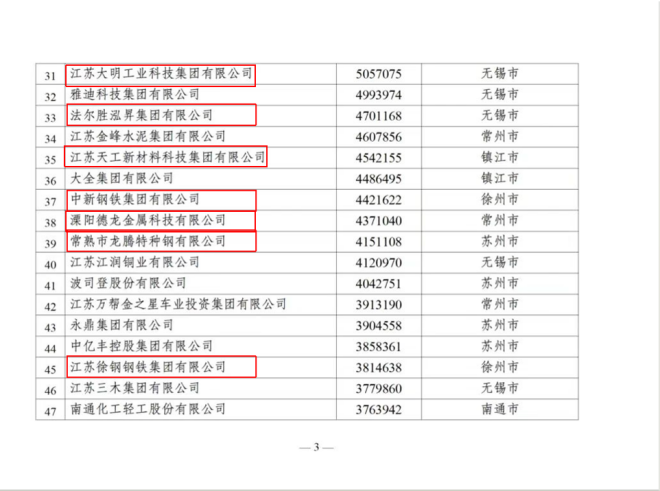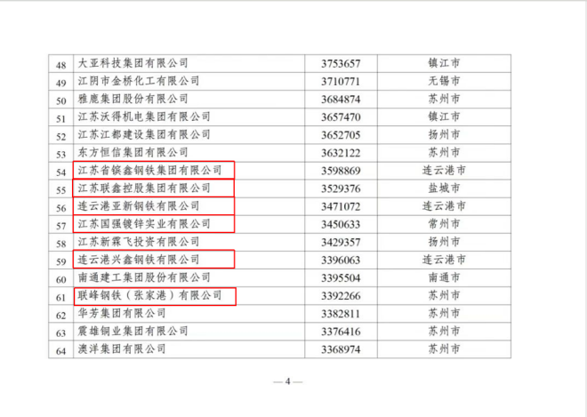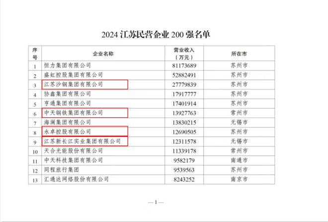 沙鋼、中天鋼鐵、永卓控股等多家鋼鐵企業(yè)上榜“2024江蘇民營企業(yè)200強”