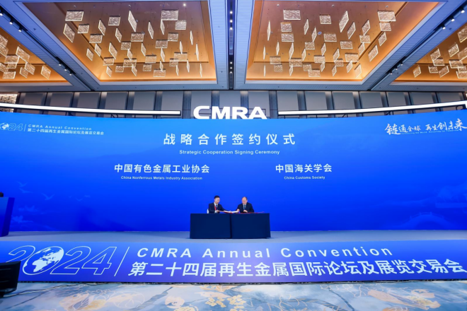 隨后,“再生金屬綠色供應(yīng)鏈合作伙伴計(jì)劃” 正式啟動(dòng),中國(guó)有色金屬工業(yè)協(xié)會(huì)與中國(guó)海關(guān)學(xué)會(huì)在會(huì)上簽署了戰(zhàn)略合作協(xié)議。再生金屬分會(huì)分別與中東回收局、馬來(lái)西亞有色金屬商會(huì)、非洲回收協(xié)會(huì)簽署了戰(zhàn)略合作協(xié)議,同時(shí)發(fā)布了“2023年度再生有色金屬企業(yè)營(yíng)業(yè)收入20強(qiáng)”名單。