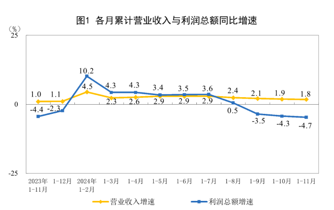 2024年1—11月份全國規模以上工業企業利潤下降4.7%