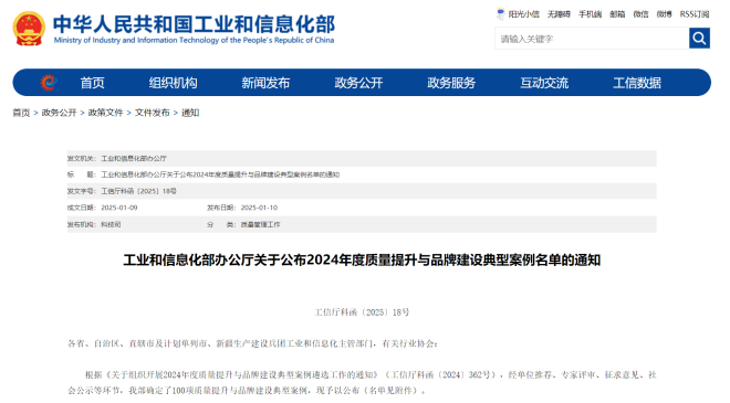 近日,工業(yè)和信息化部公布2024年度質(zhì)量提升與品牌建設(shè)典型案例名單。經(jīng)單位推薦、專家評審、征求意見、社會公示等環(huán)節(jié),確定了100項(xiàng)質(zhì)量提升與品牌建設(shè)典型案例,包括質(zhì)量管理能力方向、質(zhì)量技術(shù)創(chuàng)新應(yīng)用方向、可靠性提升方向、品牌建設(shè)方向4個(gè)方向。