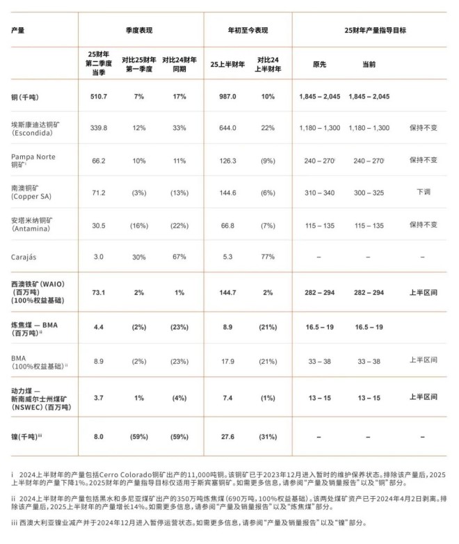 其中,2025上半財年(2024年7-12月)銅礦產量為98.7萬噸,埃斯康迪達銅礦增產22%,創下十年來新高,推動其總體銅產量實現10%的增長。