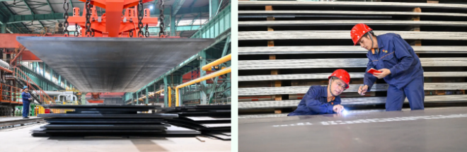 期間,首鋼京唐制造部、中厚板事業部、鋼軋作業部、質檢監督部、銷售管理部、技術中心與首鋼技術研究院、股份營銷中心等單位高效協同,針對該訂單規格尺寸,優化鑄坯設計和軋制規程,同時根據產品厚規格超寬幅的特點,優化軋制和熱處理工藝,保證產品的強韌性能,最終成功生產出尺寸、性能、表面質量等均滿足用戶和標準要求的產品,保障了從合同組織到產品交付的全流程優質服務。此次合同的快速交付,體現了首鋼京唐快速響應用戶需求及智能制造、快速精準交貨的能力。