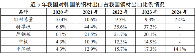 2025年2月20日,韓國產業通商資源部貿易委員會宣布,提議對自中國進口的厚板征收臨時反傾銷稅,稅率為27.91%-38.02%不等。不同企業的傾銷稅率分別為寶鋼27.91%、江蘇沙鋼29.62%、湘潭鋼鐵、賽諾國際和廈門國貿控股38.02%,其他在華供應商31.69%。