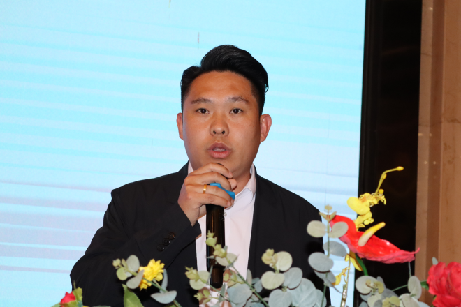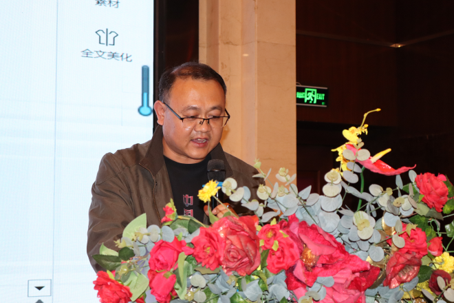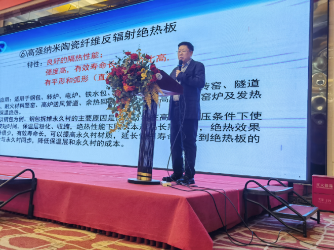 營口創興科技有限公司董事長楊恩良介紹《營口創興科技研制生產的高強納米絕熱板在冶金、耐材窯爐的應用》,分享創新產品應用實踐。