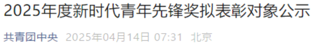 4月14日,從共青團中央獲悉,經(jīng)黨和國家功勛榮譽表彰工作委員會辦公室同意,共青團中央、全國青聯(lián)開展了2025年度新時代青年先鋒獎評選工作。經(jīng)省級團委推薦、評審委員會評審,確定679名新時代青年先鋒獎擬表彰對象。現(xiàn)對擬表彰對象進(jìn)行公示。其中,鋼鐵行業(yè)多人入選!
