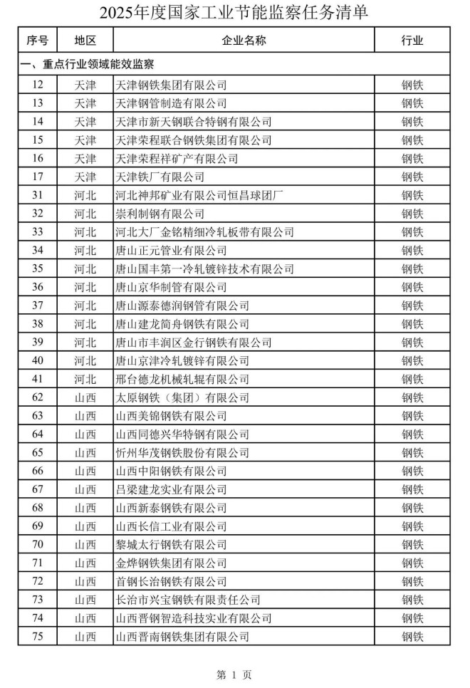 國家工業節能監察任務清單發布 包含這些鋼企