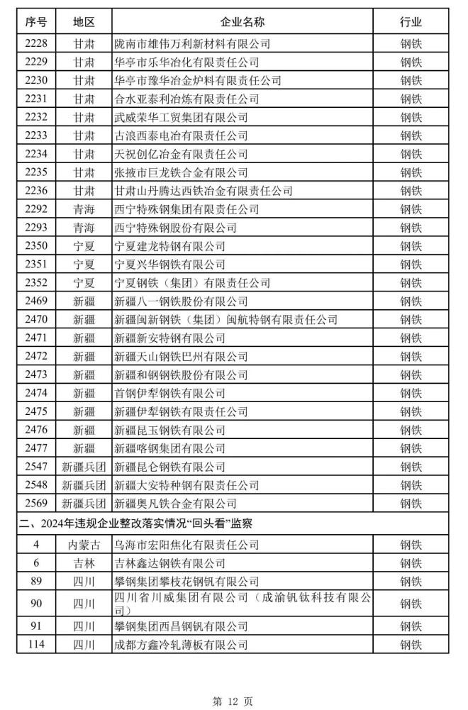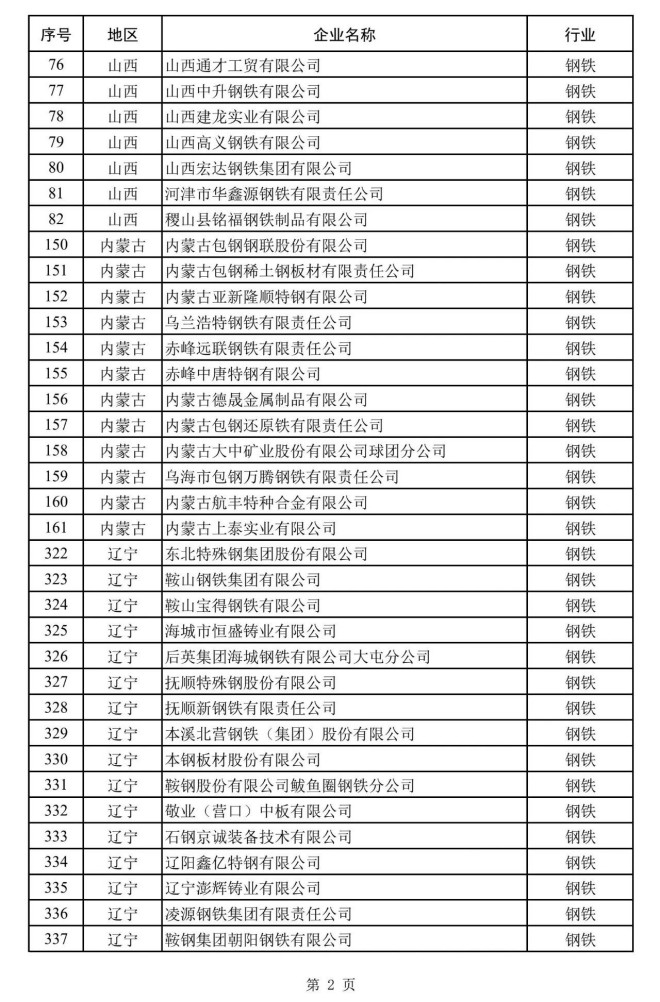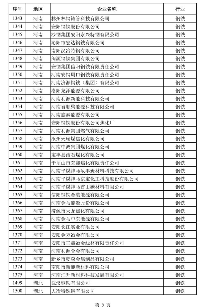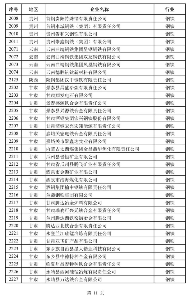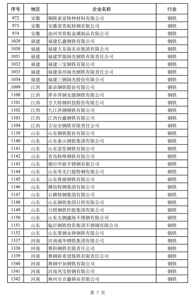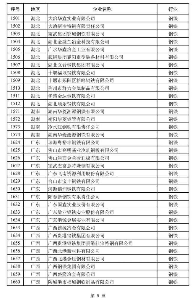 其中,鋼鐵企業名單如下: