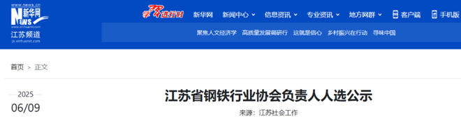 6月9日,中共江蘇省社會組織綜合委員會對江蘇省鋼鐵行業協會負責人人選進行公示。