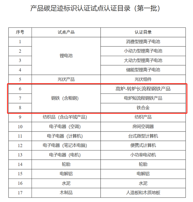 近日,市場監(jiān)管總局、生態(tài)環(huán)境部、工業(yè)和信息化部辦公廳聯合印發(fā)通知,明確了全國首批產品碳足跡標識認證試點認證目錄,包括鋰離子電池、光伏組件、鋼鐵產品、紡織產品、房間空調器、計算機、小功率電機、輪胎、電解鋁、水泥、人造板和木質地板等17種產品。